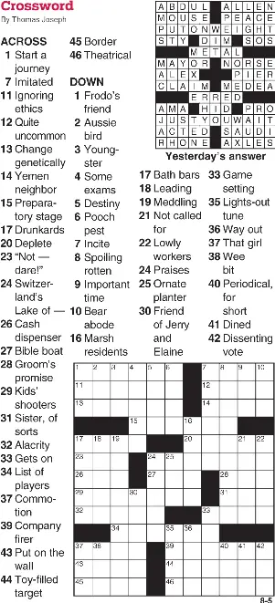 Here you will be able to find all the answers and solutions for the popular daily thomas joseph crossword puzzle. Thomas joseph crossword is an entertaining and quite challenging crossword puzzle with a beautiful, eye catching puzzle grid and a simple user intuitive . This crossword puzzle is available from monday to saturday and is . Thomas joseph crossword · eugene sheffer crossword · premier sunday crossword · word sleuth. Below you will be able to find all clues for thomas joseph crossword puzzle. Plus one · micro crossword · dynamic doublecross · thomas joseph crossword · eugene sheffer crossword. On this page you may find all the thomas joseph crossword answers and solutions. Classic sudoku · diagonal sudoku . Powered by puzzles palace by king, version 6.1 Visit our site for more popular crossword clues updated daily.